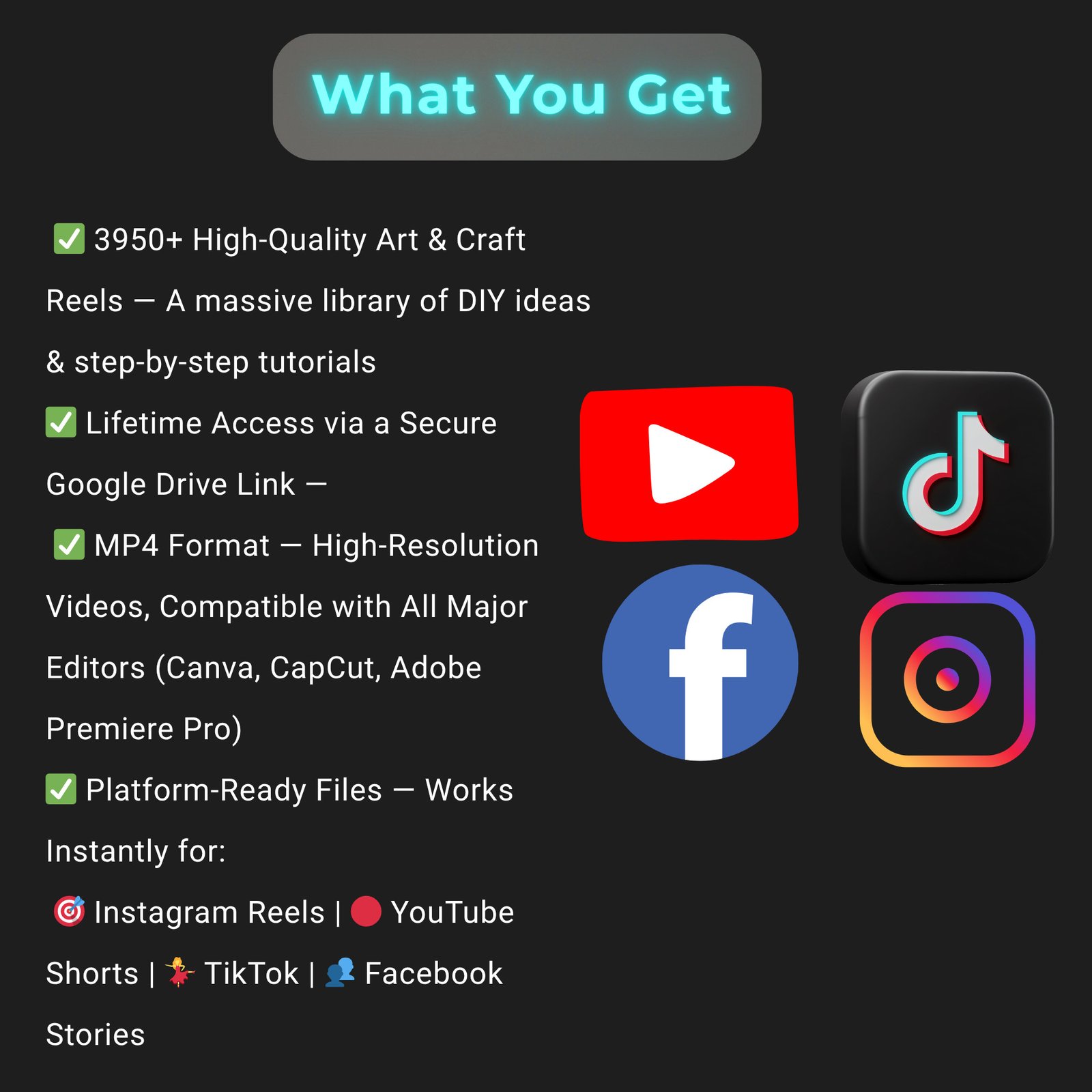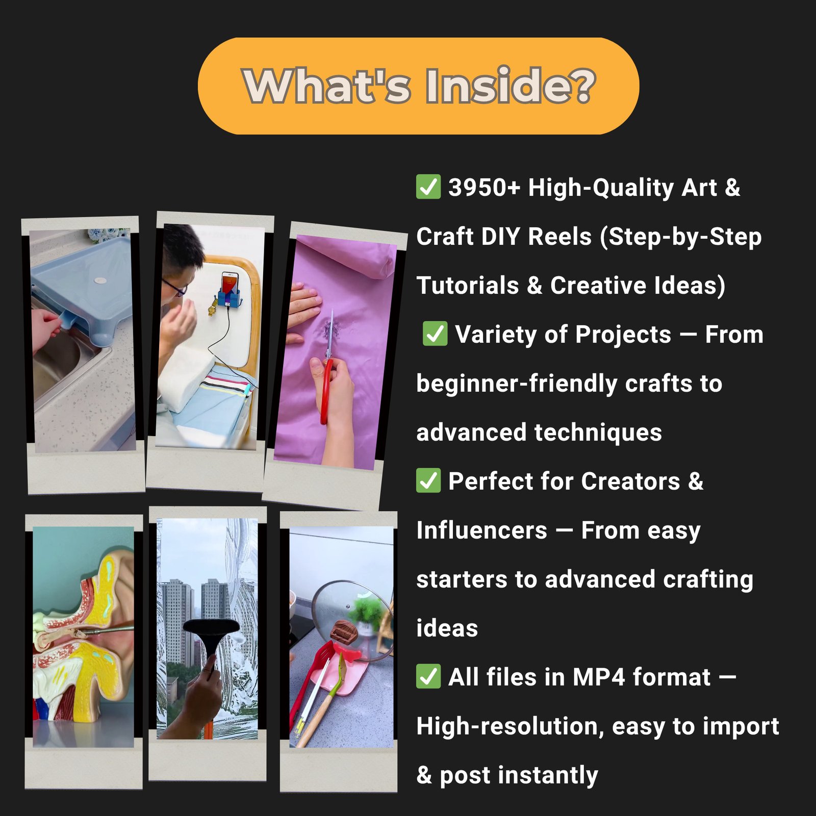 🌟 3950+ High-Quality Art & Craft Reels: A massive collection of creative, DIY-focused video content.