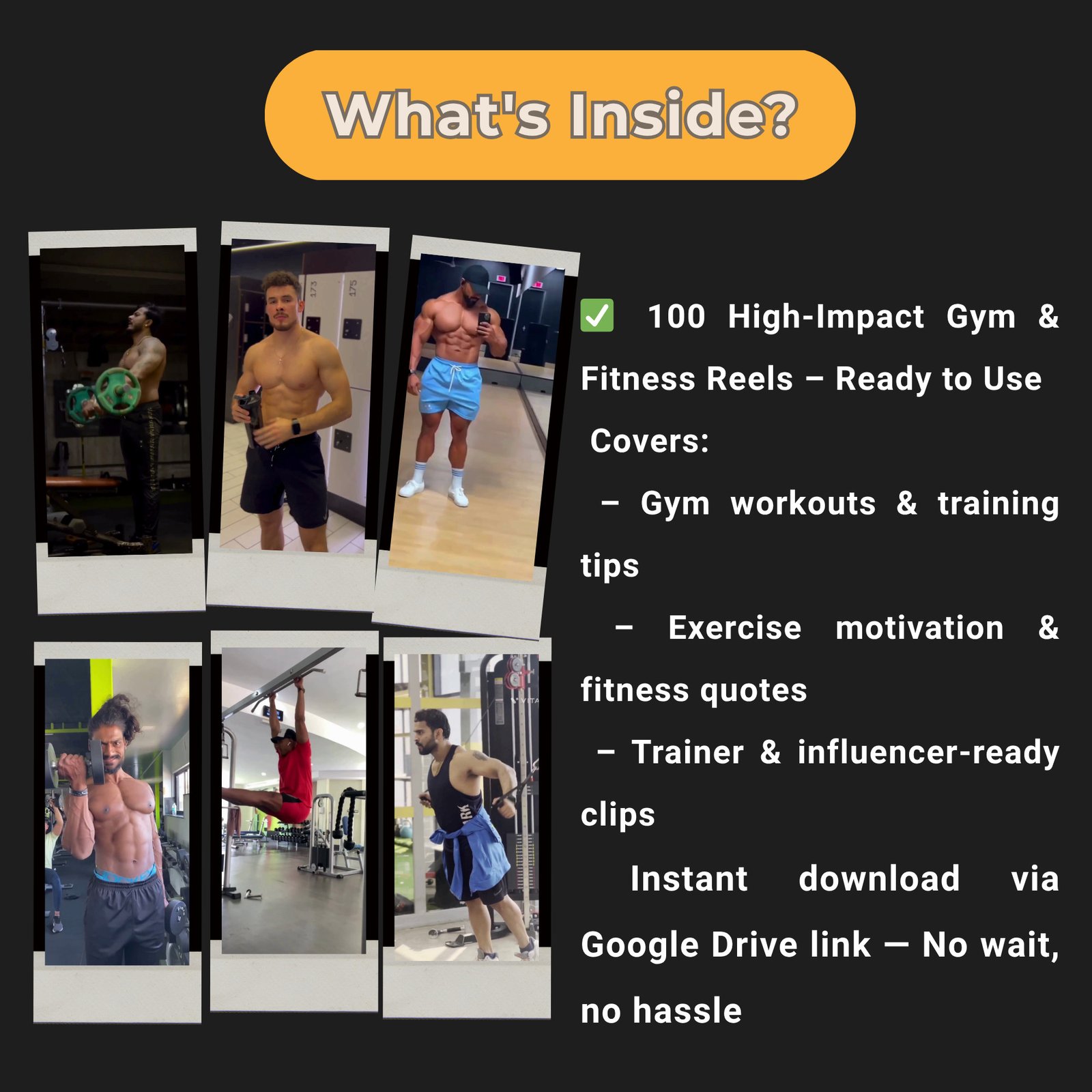 🌟 100 Professionally Curated Fitness & Gym Motivation Reels: High-energy videos designed to inspire and engage.